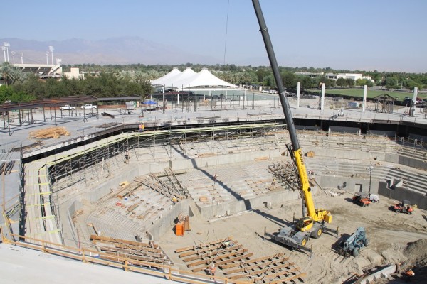 The final structural beam was placed atop the new Stadium 2 at the Indian Wells Tennis Garden (IWTG) on Tuesday, August 6 in a “topping out” celebration presented by Watkins Landmark Construction. The new stadium is on schedule to be completed in time for the 2014 BNP Paribas Open to be held March 3-16, 2014.