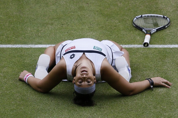 France’s Marion Bartoli celebrates beating Belgium’s Kirsten Flipkens during their women’s singles semi-final match on day ten of the 2013 Wimbledon Championships tennis tournament at the All England Club in Wimbledon, southwest London, on July 4, 2013. Bartoli won 6-1, 6-2. AFP PHOTO / POOL / KIRSTY WIGGLESWORTH – RESTRICTED TO EDITORIAL USE (Photo credit should read KIRSTY WIGGLESWORTH/AFP/Getty Images)