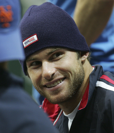 OSTRAVA, CZECH REPUBLIC – FEBRUARY 11: Andy Roddick smiles during the Davis Cup World Group match between Czech Republic & USA at the CEZ Arena on February 11, 2006 in Ostrava, Czech Republic . (Photo by Pavel Lebeda/Getty Images) *** Local Caption *** Andy Roddick