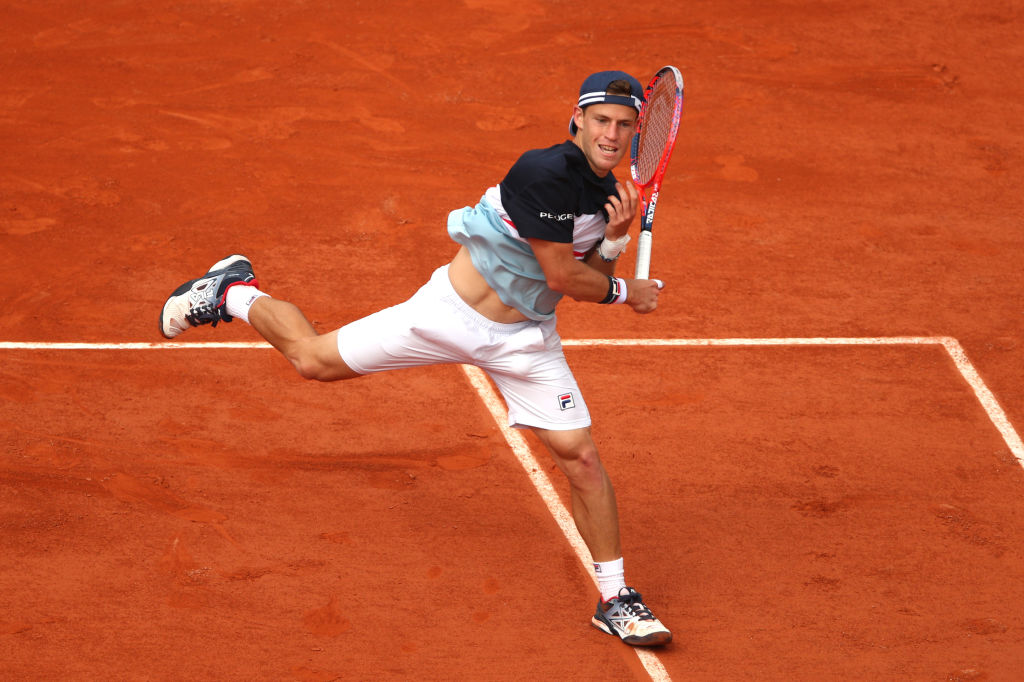 He’s only 5’6”, a full foot shorter than his famous Argentinian countryman Juan Martin del Potro. He’s only reached the quarterfinals of one Grand Slam – the 2017 US Open. But no matter, Diego Schwartzman was slinging in the rain against a man who had a 83-2 record at Roland Garros.