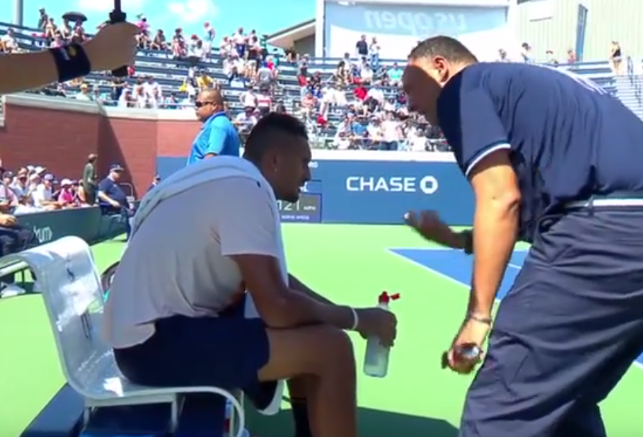 The US Open, which has made many good calls this year, claimed that the ump got out of his chair because Court 17 was too loud – not so. They said that Mohamed was just concerned about whether Kyrgios needed medical attention, and that Lahyani simply wanted to tell the Aussie that if his disinterest in the match continued, as an ump, he might take action.