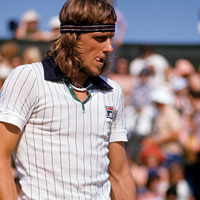 Decades later, Jack Kramer found himself meeting the King of England in a white T-Shirt. Colored shirts didn’t enter the game until 1970, and Ilie Nastase was the first player to win the US Open in a colored shirt. Bjorn Borg’s iconic Fila shirt had such an impact that it’s now in the Hall of Fame. At Wimbledon in 1988, ball girls used towels to create a makeshift curtain to surround American Barbara Potter as she changed her shirt on court.