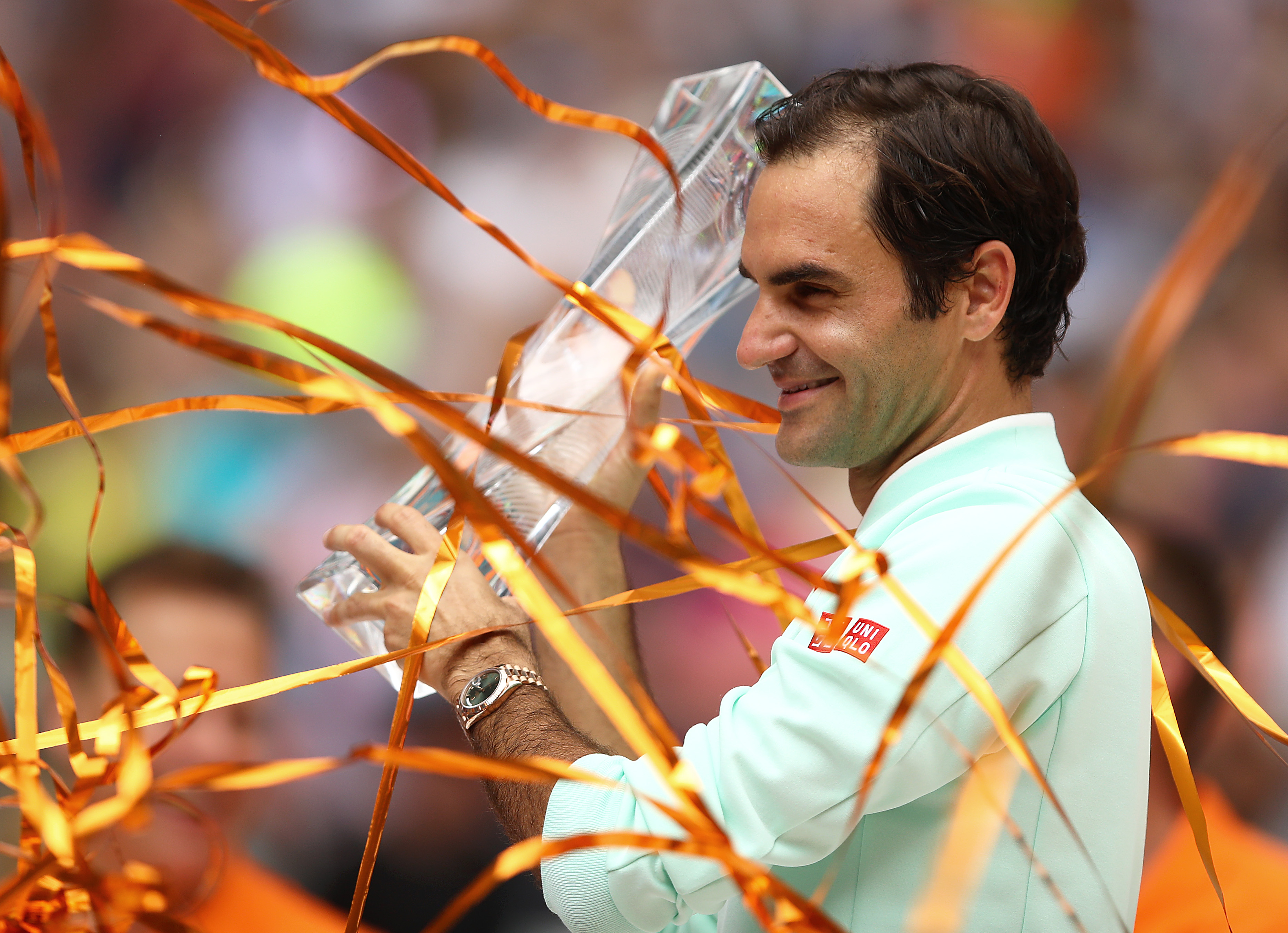 But in a Miami football stadium, Federer scored one touchdown after another. In the home of the Dolphins (the only animal that gives us a perpetual smile) the most joyous tennis player of all time beamed throughout a dreamy run to his fourth Miami title and his 101st tourney triumph.