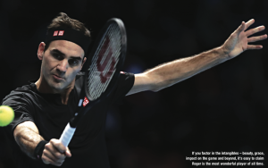 Historian Richard Evans challenges us: “Define best. It’s not just about winning titles or beating rivals. It’s also about how you play the game. With enormous respect to his rivals, Roger just plays tennis better than any- one I have ever seen – including Lew Hoad.”