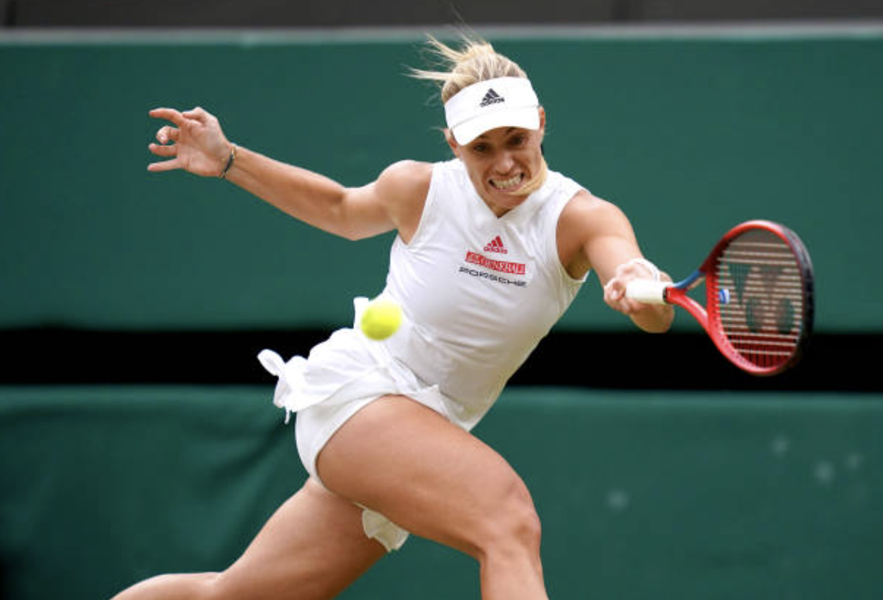 Angie Kerber’s emergence has been even more striking. The three-time Slam winner downed Serena in the 2018 Wimbledon final. But the German with a big grin hadn’t been smiling much lately– she’d lost in the opening round of this year’s Aussie and French Opens. In her last ten Slams she hasn’t gotten beyond the fourth round. Her ranking fell to No. 25. But in June she did win a tune-up tourney on home ground in Bad Homburg, Germany. At Wimbledon, the still fleet 33-year-old lefty downed rising Coco Gauff, 17, and today she dismissed the considerable No. 19 seed Karolina Muchova. She’ll next face Barty in the semis.
