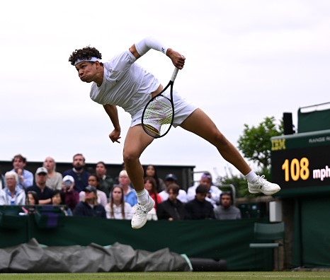 Yes, Denis, once No. 10 in the world, is a savvy veteran and has a gorgeous backhand. But his game can be erratic. His ranking has slipped to No. 121, and Shelton won his third straight five-set match going away, 6-7(4), 6-2, 6-4, 4-6, 6-2, to reach the fourth round – 30 years after his father and coach Bryan did the same here at Wimbledon.