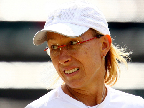 WIMBLEDON, ENGLAND – JULY 03: Martina Navratilova of USA looks on playing with Helena Sukova of Czech Republic during the women’s doubles invitation match against Tracy Austin of USA andwith Kathy Rinaldi-Stunkelof USA on Day Eleven of the Wimbledon Lawn Tennis Championships at the All England Lawn Tennis and Croquet Club on July 3, 2009 in London, England. (Photo by Paul Gilham/Getty Images) *** Local Caption *** Martina Navratilova