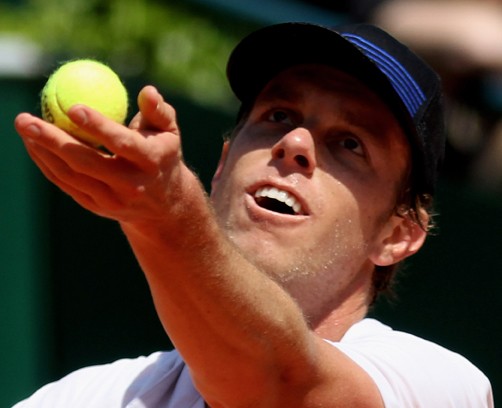 DUESSELDORF, GERMANY – MAY 22: Sam Querrey of USA in action during his final match against Juan Monaco of Argentina during day seven of the ARAG World Team Cup at the Rochusclub on May 22, 2010 in Duesseldorf, Germany. (Photo by Friedemann Vogel/Bongarts/Getty Images) *** Local Caption *** Sam Querrey