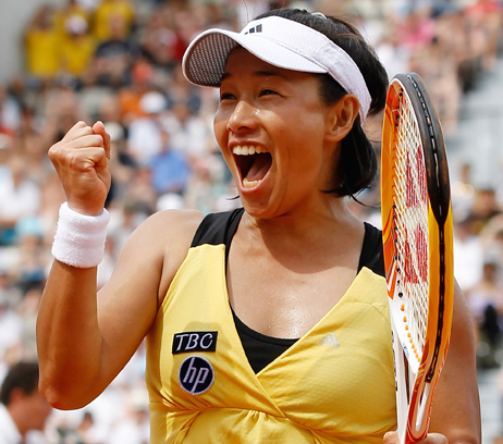 PARIS – MAY 25: Kimiko Date Krumm of Japan celebrates winning match point in the women’s singles first round match between Dinara Safina of Russia and Kimiko Date Krumm of Japan on day three of the French Open at Roland Garros on May 25, 2010 in Paris, France. (Photo by Matthew Stockman/Getty Images) *** Local Caption *** Kimiko Date Krumm