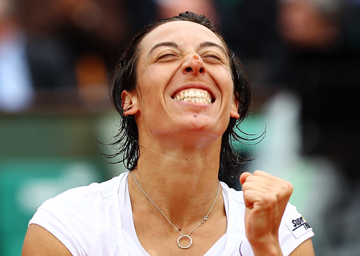 PARIS – JUNE 01: Francesca Schiavone of Italy celebrates winning the women’s singles quarter final match between Caroline Wozniacki of Denmark and Francesca Schiavone of Italy on day ten of the French Open at Roland Garros on June 1, 2010 in Paris, France. (Photo by Clive Brunskill/Getty Images) *** Local Caption *** Francesca Schiavone