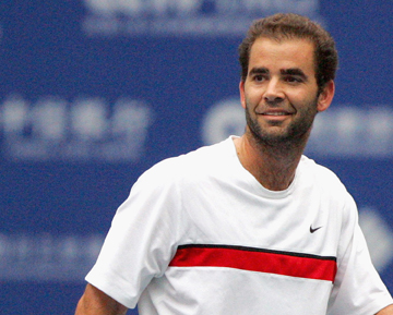 CHENGDU, CHINA – OCTOBER 23: (CHINA OUT) Pete Sampras of United States looks on during his match against Paradorn Srichaphan of Thailand during day three of the Chengdu Open 2010 – An ATP Champions Tour at Chuantuo International Tennis Center on October 23, 2010 in Chengdu, Sichuan Province of China. (Photo by ChinaFotoPress/Getty Images) *** Local Caption *** Pete Sampras