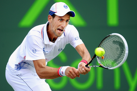 KEY BISCAYNE, FL – APRIL 01: Novak Djokovic of Serbia in action during the men’s singles final against Andy Murray of Great Britain on day 14 of the Sony Ericsson Open at Crandon Park Tennis Center on April 1, 2012 in Key Biscayne, Florida. (Photo by Michael Regan/Getty Images)